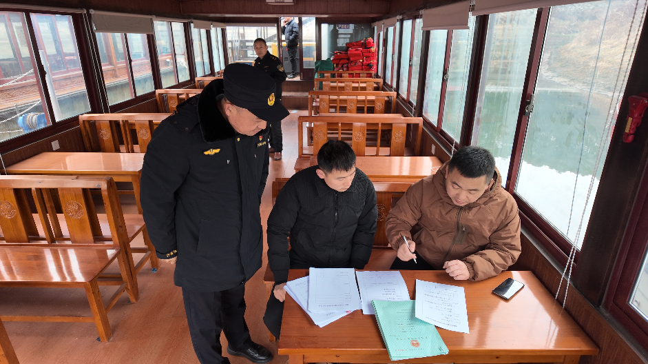 科技赋能“非现场”,执法提质又增效。依托科技信息赋能水路执法工作,充分运用《全国客船智能监控管理系统》《随州水路运输信息化管理系统》及海事协同平台数据,对渡口、涉客船舶实施动态抽查,实时监管渡口“三无”船舶非法营运、船舶禁限航措施落实、船员适任、疲劳驾驶及救生衣规范穿戴等情况,既减少登船检查频次、保障船舶正常营运秩序,又有效提升水上交通执法的效率与精准度。
