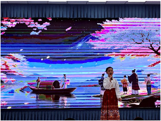 活动伊始,中心小学校长登台致辞,号召师生以经典为友,在诵读讲解中汲取文化养分、涵养家国情怀,为本次展演拉开序幕。