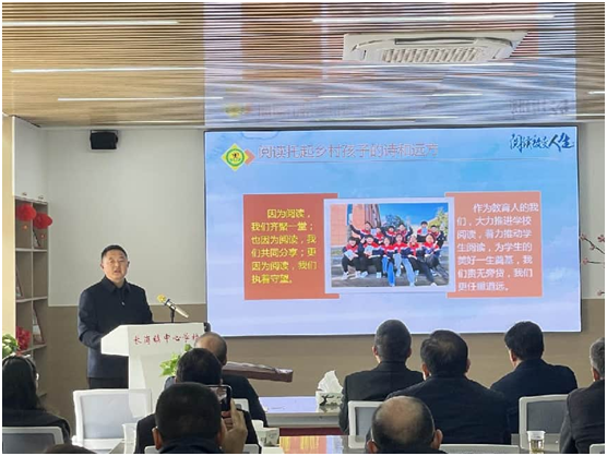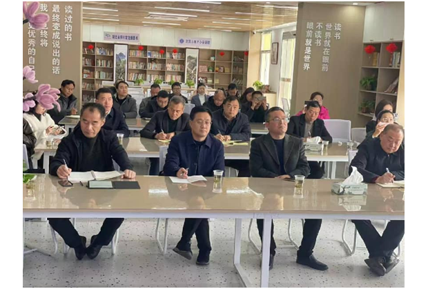 考察团一行在长岗镇教育党总支书记梁仁力的引导下,重点走访了学校的阅读主阵地——“大洪山书苑”。在这里,中学校长任勇兵以《九载书香帮扶路,家校领读启新程》为题,向考察团娓娓道来学校在阅读推广路上的坚守与创新。