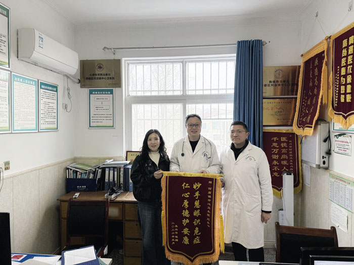 随州新闻网讯 (通讯员王静、陈勇)一面锦旗,承载两段跨越三年的生命守护。3月20日上午,在何店镇中心卫生院内科住院部,患者熊阿姨的家属将一面印有“妙手慧眼识危症,仁心厚德护安康”的锦旗,郑重交到刘永华医师手中。这不仅是对一次诊疗的认可,更是对一名基层医者长期默默守护的真挚回响。
