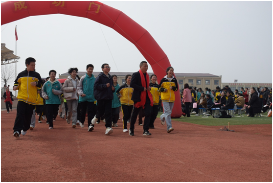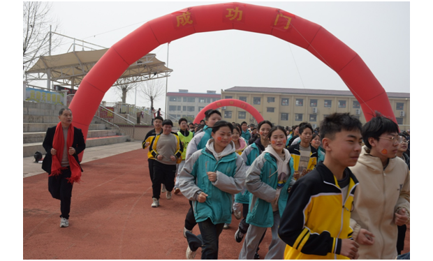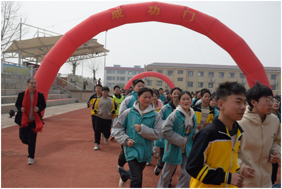誓师大会现场,在班主任们的护航下,全体九年级学子依次跨越“成功门”、冲向“凯旋门”,奔跑着象征百日冲刺的坚定步伐。