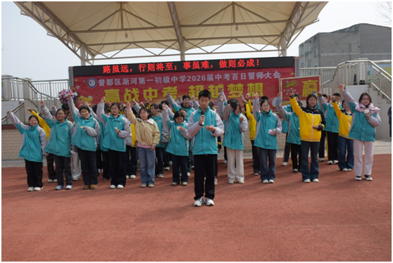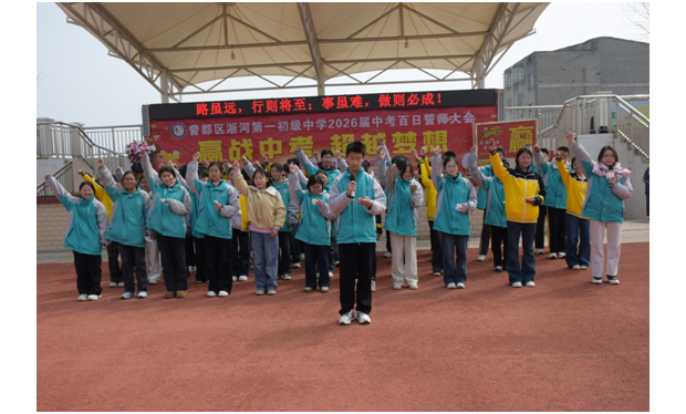 随州新闻网讯(通讯员高语晗)三月的校园春潮涌动,学习的征程奋斗绚丽。3月20日,曾都区淅河第一初级中学操场上红旗猎猎、誓言震天,八、九年级全体师生及家长代表共聚于此,举行2026届中考百日誓师大会,擂响冲刺中考的奋进战鼓,共赴青春的誓师之约。