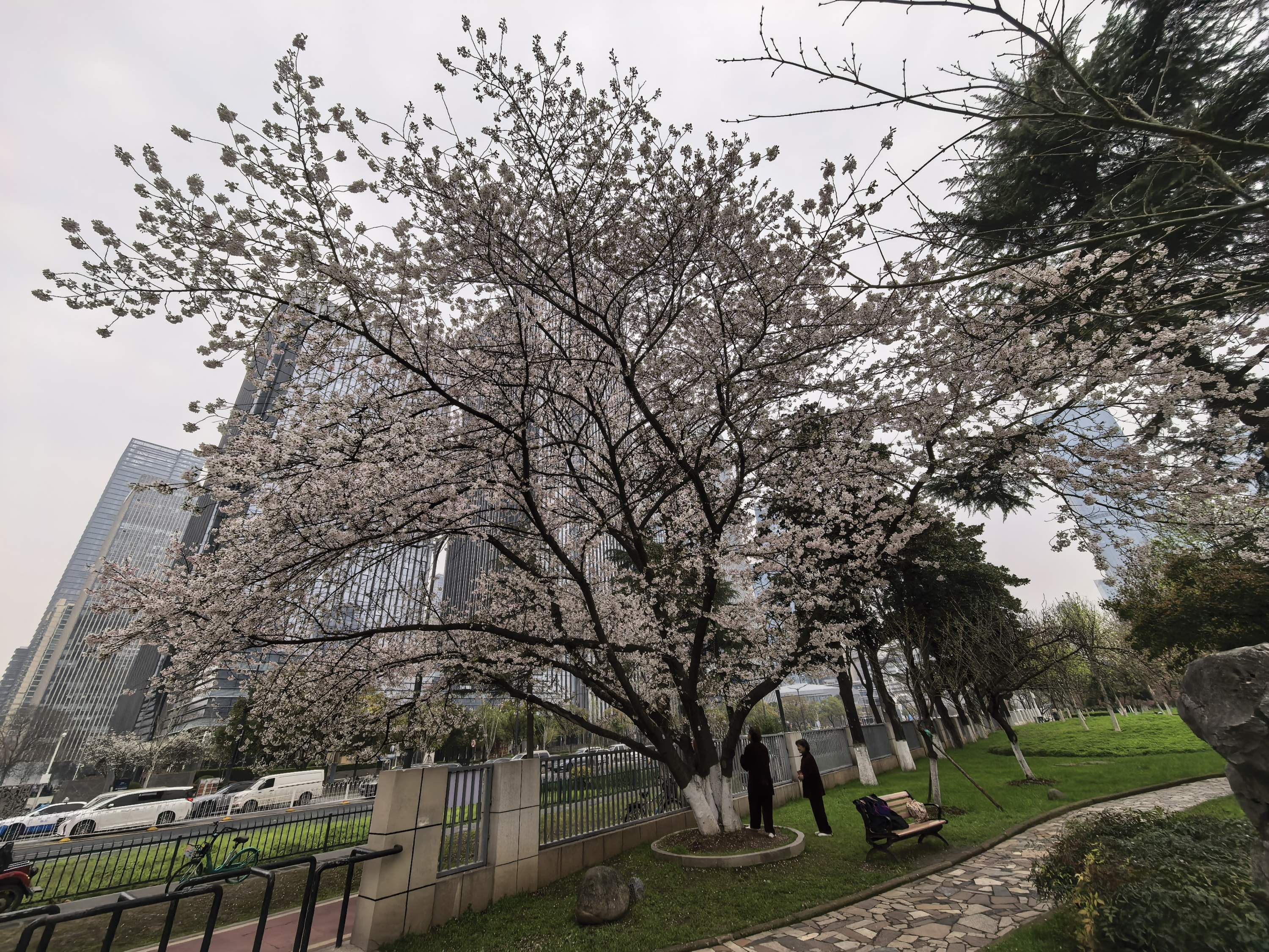 3月24日上午,市民万先生在和平大道上偶遇一棵“巨樱”。