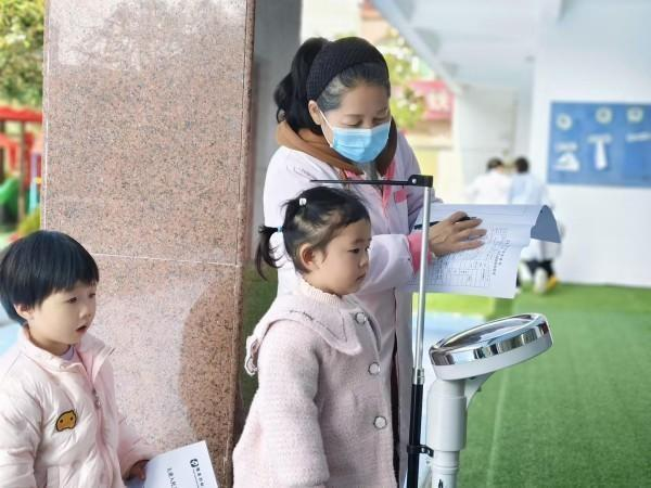 体检现场,孩子们在老师的组织下井然有序地配合医护人员完成各项检查。医护人员严格按照幼儿健康体检标准,逐项为幼儿开展全方位的健康检查与评估,全面覆盖幼儿生长发育、身体机能、健康状况等多个关键方面。