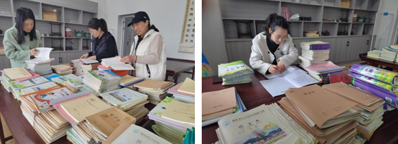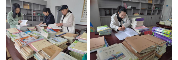 上午第一节课,全体教师按时将教学材料送至指定地点,按年级分类摆放。检查内容包括常规教学手册,语文、数学、英语学科的二次备课及各类作业本,以及短线学科的备课与作业。所有上交的作业均为班级全体学生材料,确保检查的全面性与公平性。