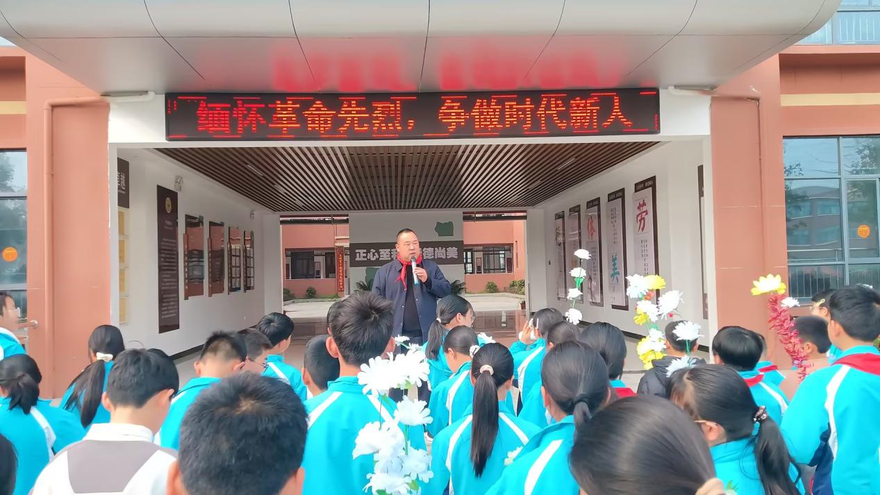 活动当天,师生们身着整齐校服,佩戴鲜艳红领巾,手持洁白小花,校长向同学们讲述革命先烈为民族解放、国家富强抛头颅、洒热血的英雄事迹,让同学们深刻了解今天幸福生活的来之不易,懂得铭记历史、珍爱和平。