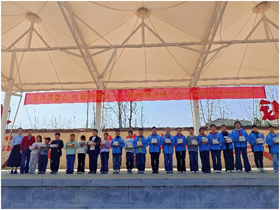 教学副校长为学生代表赠书,鼓励同学们潜心阅读,在书籍中增长知识、涵养童心。学生代表随后宣读阅读倡议书,号召全校同学养成每日读书的好习惯,随后全体师生齐诵读书口号,现场氛围热烈高涨。