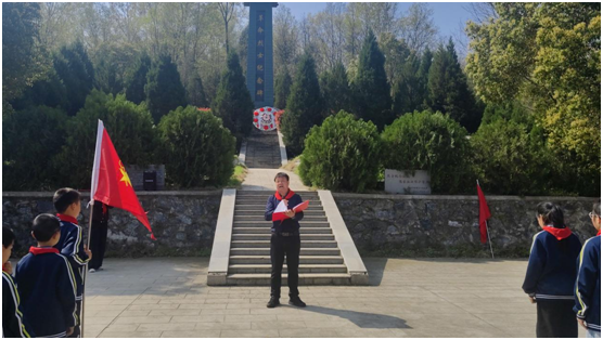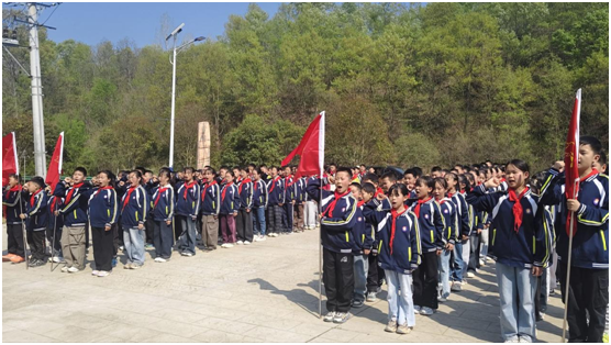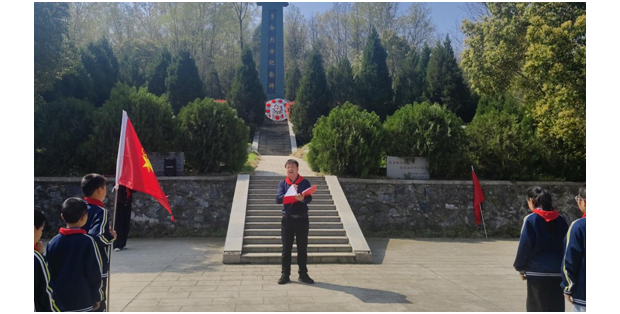 活动中,出旗、奏唱国歌与队歌环节依次进行,铿锵的旋律、嘹亮的歌声在陵园上空回荡,孩子们用最真挚的方式,诉说着对祖国的热爱和传承英烈遗志的决心。学生代表登台献词,字字句句饱含对先烈的崇敬;宣讲人娓娓道来本地烈士的英雄事迹,那些浴血奋战、舍生取义的故事,让孩子们真切懂得如今的和平幸福生活来之不易。校领导也为孩子们送上殷切寄语,叮嘱大家将英烈精神记在心里、融入日常,以先烈为榜样,扛起少年的时代责任,孩子们听得格外认真,把嘱托深深记在心底。