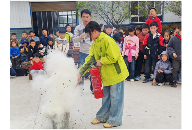 理论培训结束后,灭火器实操演练正式开展。在老师的现场示范与一对一指导下,学生代表们依次上前,手持灭火器对准模拟火点,严格按照操作要领完成灭火动作。随着白色干粉喷涌而出,模拟火点被迅速扑灭,孩子们在亲身体验中真正掌握了灭火技能,实现了从“理论认知”到“实战操作”的跨越。围观的同学们全程认真观摩,在实践观摩中深化了对消防技能的理解。