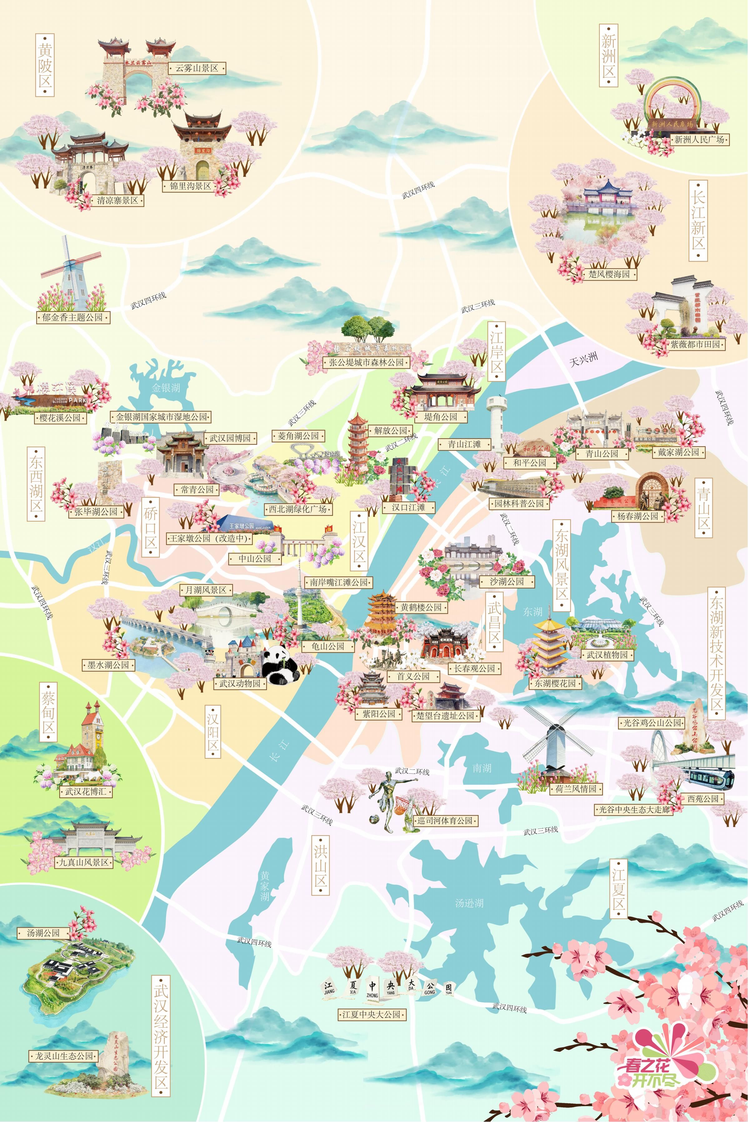 “给春天盖个章”乐游打卡活动,是最轻巧入场券。4月3日至4月30日,解放公园联动园内花屿森活、东棠书院、楚香门店、赫尔书院、解放公园综合体育馆、L3咖啡等六家商户,推出专属集章地图。海棠、绣球、杜鹃、樱花、桃花、玉兰——六枚春花印章藏在园中六个打卡点,集齐即可兑换定制明信片及商家福利,让春花“当钱花”。4月11日起,这场集章之旅将扩展至黄鹤楼公园、中山公园、沙湖公园、武汉动物园、龟山公园,游客可在上述公园的指定点位,领取纸质版赏花手册和地图,按图索骥,把逛公园变成一场春日寻宝。