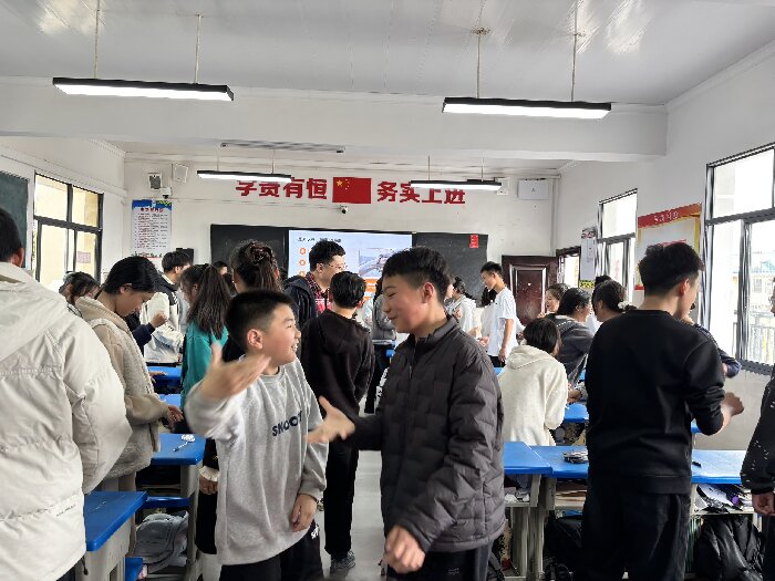 在齐书升为家长们带来精彩讲座的同时,另一间教室里,志愿者沈老师正在为七年级学生开展“情绪魔法学院:超能少年特训营”团体辅导活动。沈老师通过情景模拟、角色扮演、情绪卡片等趣味方式,引导孩子们认识喜、怒、哀、惧等基本情绪,学习如何正确表达和调节情绪。现场气氛热烈,孩子们争先恐后参与互动,笑声不断。“原来生气的时候可以深呼吸三次再说话”“不开心的时候可以画画或者找朋友聊天”,孩子们在轻松愉快的氛围中掌握了实用的情绪管理小技巧。旁听的老师们也纷纷点赞,认为这样的团辅活动贴合青少年心理发展特点,对乡村学校心理健康教育具有很好的示范和借鉴意义。