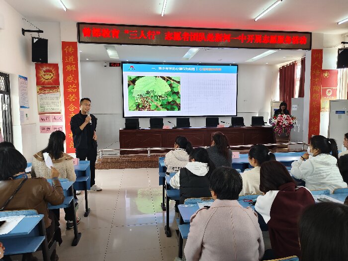随州新闻网讯 (通讯员宫经刚)4月3日,春风和煦,阳光正好。淅河第一初级中学联合曾都教育“三人行”志愿者团队开展“家庭教育进乡村”志愿服务活动,为当地家长和学生送去一场内容丰富、形式生动的教育“及时雨”。活动聚焦家庭教育理念普及与青少年心理健康辅导,通过讲座、互动、团辅等多种形式,切实回应乡村家庭在教育中的实际需求,赢得师生家长一致好评。