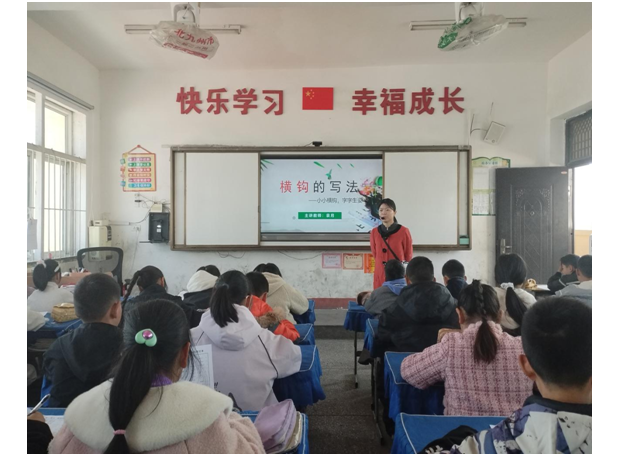 培训期间,袁月老师认真聆听专家讲座,潜心研习笔法结构、章法布局与书写技巧,深入学习书法课堂教学设计与实践方法。返校后,该老师第一时间将培训所学与校内同事进行分享交流,梳理学习重点、交流教学心得,共同探讨如何将规范书写融入日常教学、如何激发学生书法学习兴趣。随后,她精心准备并执教书法汇报课,课堂上细致示范、耐心指导,从基本笔画入手引导学生认真观察、规范书写,让学生在笔墨浸润中感受汉字之美、传承文化之韵,课堂氛围浓厚,教学效果良好。