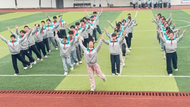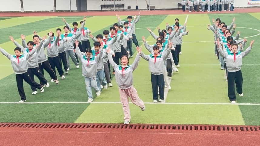 比赛现场,全校全体师生齐聚操场。各班级代表队身着统一校服、佩戴红领巾,精神抖擞、队列整齐。随着音乐响起,同学们动作舒展规范、整齐划一,每一个动作都彰显着青春活力与团队默契,充分展现了日常训练的扎实成果与班级凝聚力,赢得了现场师生的阵阵掌声。