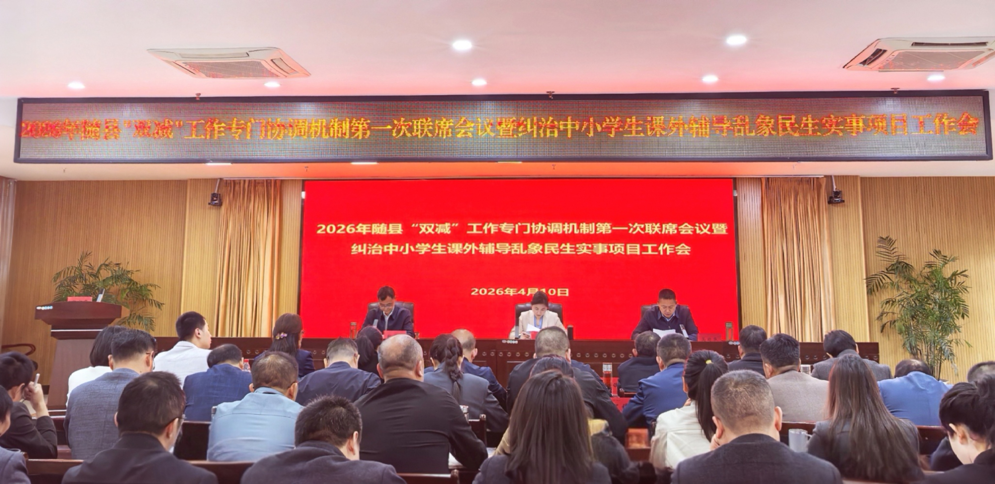 随州新闻网讯 (通讯员胡云云)4月10日,随县召开2026年“双减”工作专门协调机制第一次联席会议暨纠治中小学生课外辅导乱象民生实事项目工作会议,深入贯彻落实省、市关于群众身边不正之风和腐败问题专项整治工作部署,进一步压实监管责任、细化工作举措。