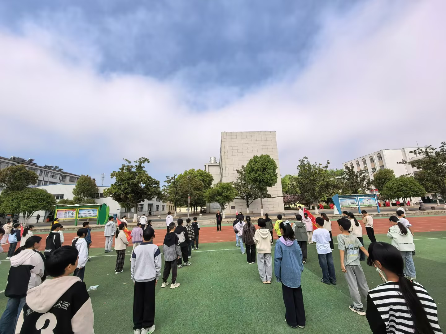升旗仪式上,师生代表国旗下发言,阐释“大安全”理念,号召学生增强忧患意识、践行青春誓言;同步召开主题团日活动,通过PPT讲解、视频学习、案例分析、知识问答等形式,系统普及国家安全知识,引导学生认清危害、掌握防范方法,实现国家安全教育全员覆盖。此次活动不仅厚植了青少年的家国情怀,还筑牢了国家安全思想防线,营造了国家安全、人人有责的浓厚校园氛围。