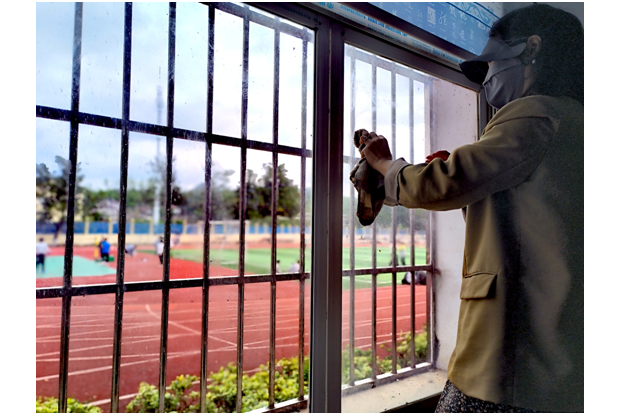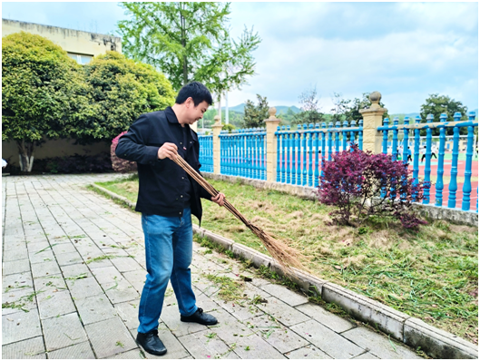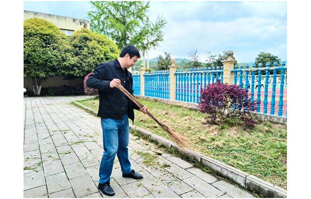 活动中,全校师生分工协作、干劲十足。在花坛绿地,师生们弯腰俯身,拔除杂草、清理枯枝;在教学楼内,大家手持抹布、扫帚,对教室门窗、黑板、图书角、走廊护栏等区域进行细致擦拭。从室内到室外,从地面到窗台,每一个角落都留下了师生们忙碌的身影。