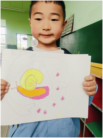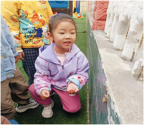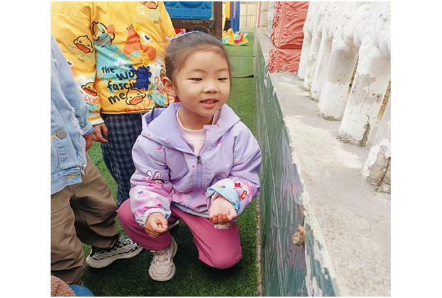 教师追随孩子的视角,抓住即时教育契机,引导幼儿轻声观察、温柔呵护小蜗牛,认识蜗牛的外形特点、爬行模样。同时把蜗牛带进班级自然角,搭建温馨小家,带领幼儿细心照料、持续观察。通过趣味讨论、简单科普、创意绘画,孩子们了解蜗牛的生活习性,懂得蜗牛喜欢潮湿、爱吃菜叶,知晓要爱护弱小生命。