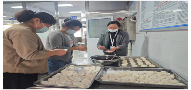 活动最后,家长们走进食堂,参与营养餐包子的制作,在揉面、包馅、塑形的过程中与老师默契配合,通过动手实践感受幼儿园膳食制作的严谨与用心。