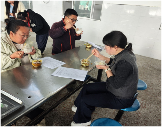 座谈结束后,家长代表们现场进行试餐体验。大家亲自品尝学生餐食,仔细感受饭菜温度、口感与分量,认真查看荤素搭配与营养均衡情况。干净整洁的就餐环境、新鲜可口的饭菜、科学合理的膳食搭配,赢得了家长们的一致认可与称赞。