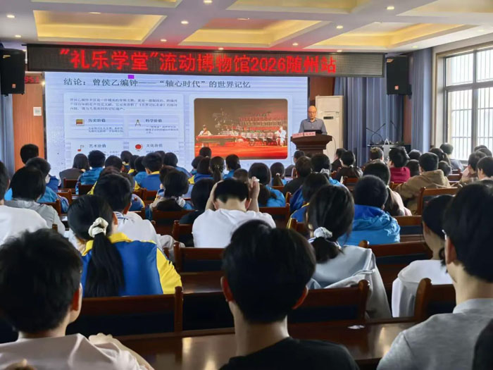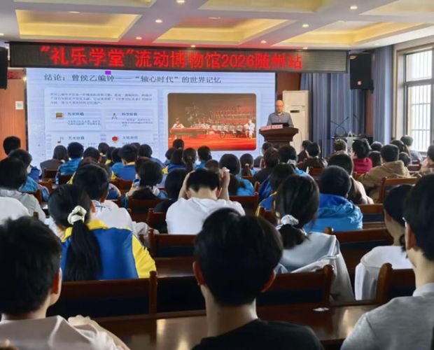 湖北省博物馆副馆长杨理胜老师给同学们带来了《解读曾侯乙编钟入选<世界记忆(国际)名录>的文化密码》讲座。杨馆长介绍,编钟承载着战国时期的礼乐制度、冶金技术与乐律理论。钟上的3755字铭文记录了比西方早近两百年的十二律体系,改写了世界音乐史。全套64件编钟音域跨越五个半八度,“一钟双音”的工艺至今令人惊叹。