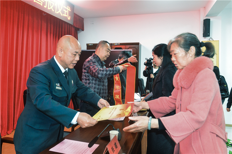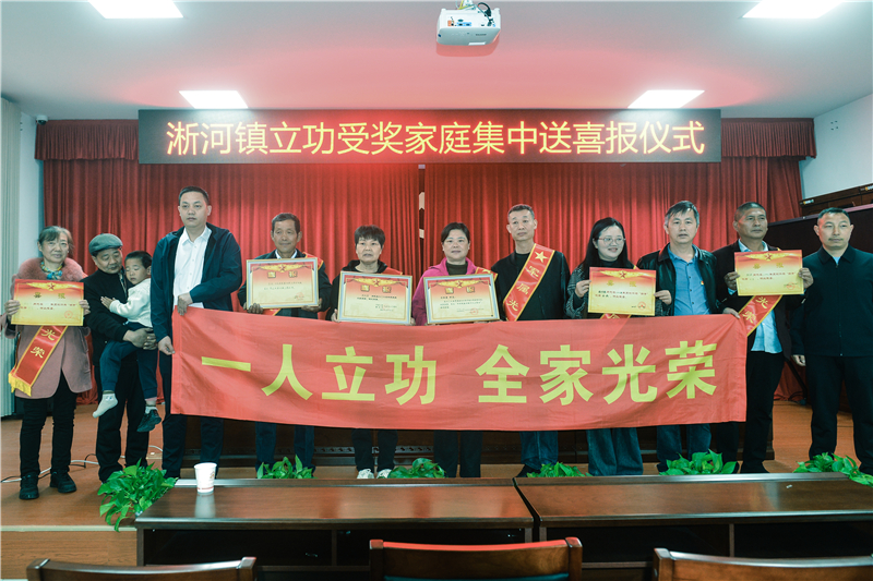 为进一步弘扬新时代拥军优属光荣传统,营造“一人参军、全家光荣;一人立功,全城敬仰”的浓厚社会氛围,激发全社会尊崇军人、关爱军属的热情,4月21日上午,淅河镇在二棉社区隆重举行“淅河镇立功受奖军人家庭集中送喜报仪式”,为3名荣立三等功的现役军人家庭、6名“四有”优秀军人家庭送上崇高的荣誉与热烈的祝贺。