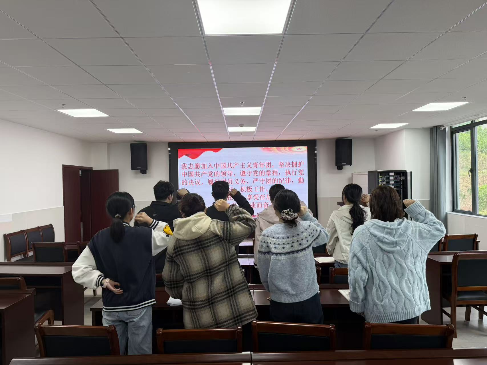 大会在庄严雄壮的国歌声中拉开序幕,全体团员精神饱满、肃立凝神,面向团旗郑重举起右拳,重温铿锵入团誓词。一句句誓言掷地有声,一次次宣誓初心如磐,让在场每一位青年团员接受了深刻的思想淬炼与精神洗礼,进一步增强了团员的归属感、责任感与使命感。