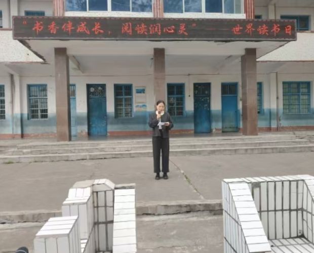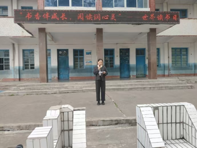 课间操时间,全体师生齐聚小操场,举行集中展示活动。教师代表上台发言,深刻阐述世界读书日的意义,向全体师生发出“爱读书、读好书、善读书”的倡议,鼓励大家坚持每日阅读,让读书成为一种生活习惯。