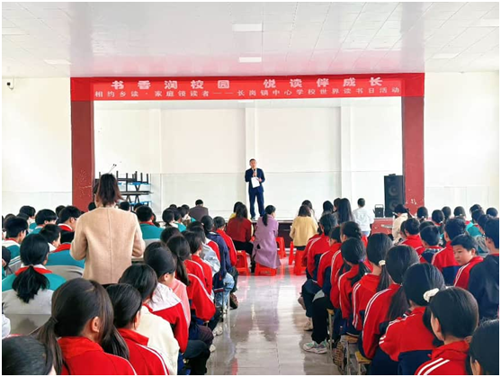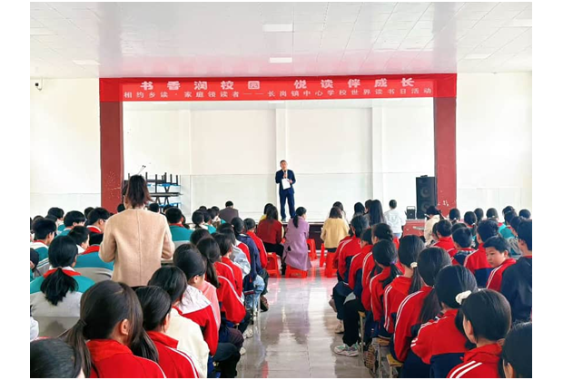 随州新闻网讯 (通讯员涂天月)最是书香能致远,腹有诗书气自华。第 31 个世界读书日如期而至,长岗镇中心学校中学部“书香润校园,悦读伴成长”相约乡读・家庭领读者主题活动在学校食堂温情启幕。受场地条件限制,本次活动特意选在食堂举办,只为让六至八年级全体学生都能参与其中,共赴这场阅读之约,让阅读的温度传递到每一位师生与家长心中。