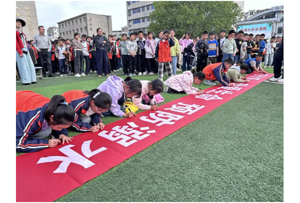 系列活动最后,学校举行“珍爱生命 预防溺水”集体签字承诺仪式。全体师生依次有序在防溺水宣传横幅上郑重签名,一笔一划书写安全承诺,一言一行牢记安全责任。大家以签名为誓,自觉承诺严守防溺水各项规定,远离河塘、水库、沟渠等危险水域,时刻把生命安全放在首位。