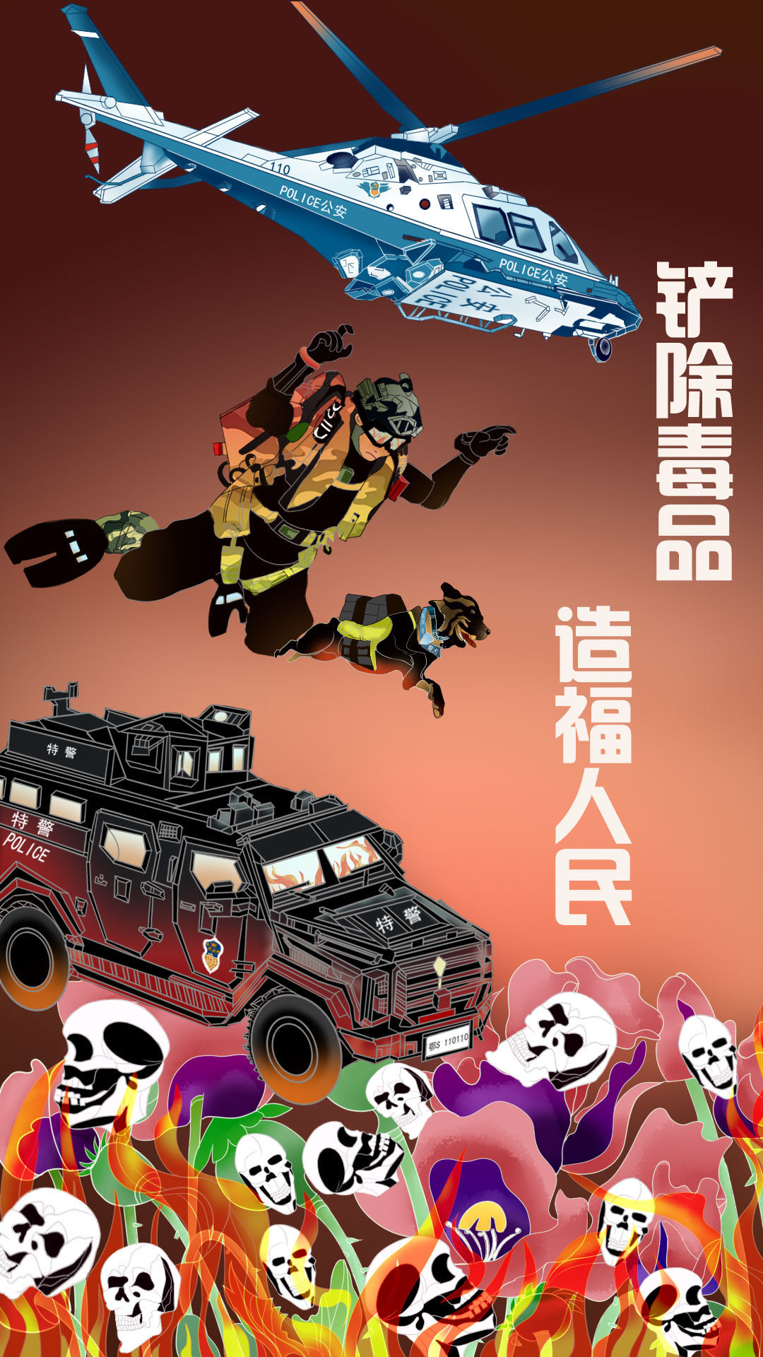 罂粟与毒品是万恶之源。一个家庭里,只要有一人沾染毒品,便往往走向破碎;毒品滋生罪恶,幸而有公安干警犹如神兵天降——他们不顾个人安危,救人于苦海……近日,随州公益插画师陈琳以画笔为剑, 用一幅禁毒长卷向毒品说“不”,也向奋斗在一线的公安干警致警。