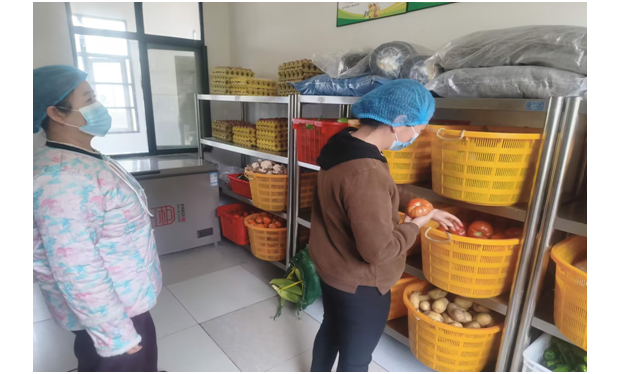 在仓储间,食材分类摆放、离地离墙,各类米面粮油、蔬菜水果、肉类食材新鲜整洁,标签标识清晰完整,保质期管理规范;在粗加工间,生熟食材分区处理,刀具、砧板按颜色区分使用,严格执行“一清二洗三消毒”流程;在烹饪区,食堂工作人员身着整洁工装,规范操作。食堂负责人现场讲解菜品制作流程与营养搭配理念;在消毒间,消毒柜、食品留样柜等设备运行有序,餐具消毒记录完整,卫生标准严格达标 。参观过程中,家长委员们认真查看、仔细询问,对学校食堂规范的管理流程、严格的卫生标准和细致的服务细节频频点赞。