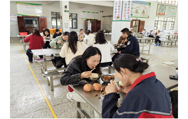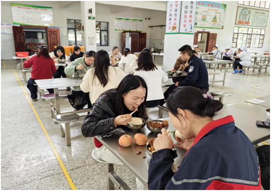 午餐时间,家长委员们化身“临时家长”,与学生一同在食堂就餐,亲身体验学生餐的口味、分量与营养搭配,开展“专业品鉴”。从菜品的咸淡适宜到荤素的合理搭配,从餐食的温度到就餐环境的舒适度,家长们从专业视角进行全面评价,并填写《试餐情况反馈表》,为后续膳食优化提供第一手参考 。