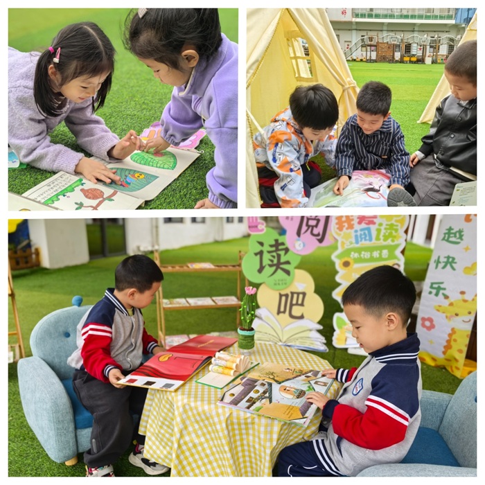 故事分享结束后,自由阅读时光正式开启。孩子们纷纷奔向书架,挑选自己喜爱的绘本,和好朋友一起,或是钻进可爱的小帐篷,或是坐在柔软的小沙发上,或是干脆趴在草地上,细细品读绘本里多彩的图画,尽情探索书中的奇妙世界。