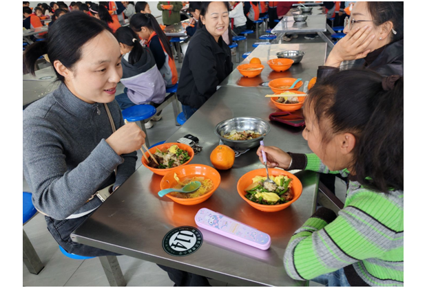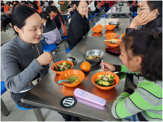活动中,家长代表们有序参观了食材验收区、仓储室、后厨操作间及就餐区,全面了解食材采购溯源、加工制作、消毒留样等标准化流程,零距离见证校园餐的安全品质;随后,家长们与学生一同暖心陪餐,沉浸式体验校园就餐氛围,并结合体验提出中肯建议。