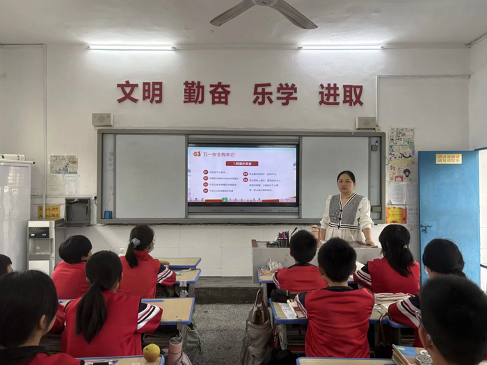 随州新闻网讯(通讯员刘丽、王祥梅)五一假期将至,为确保全体师生度过一个平安、健康、快乐的节假日,聚奎门小学组织开展了以“快乐过五一,安全不放假”为主题的安全教育系列活动。本次活动由政教处统筹安排,通过校园广播集中宣讲与各班召开主题班队会相结合的方式,将安全知识送到每一位学生身边,切实筑牢假期安全防线。
