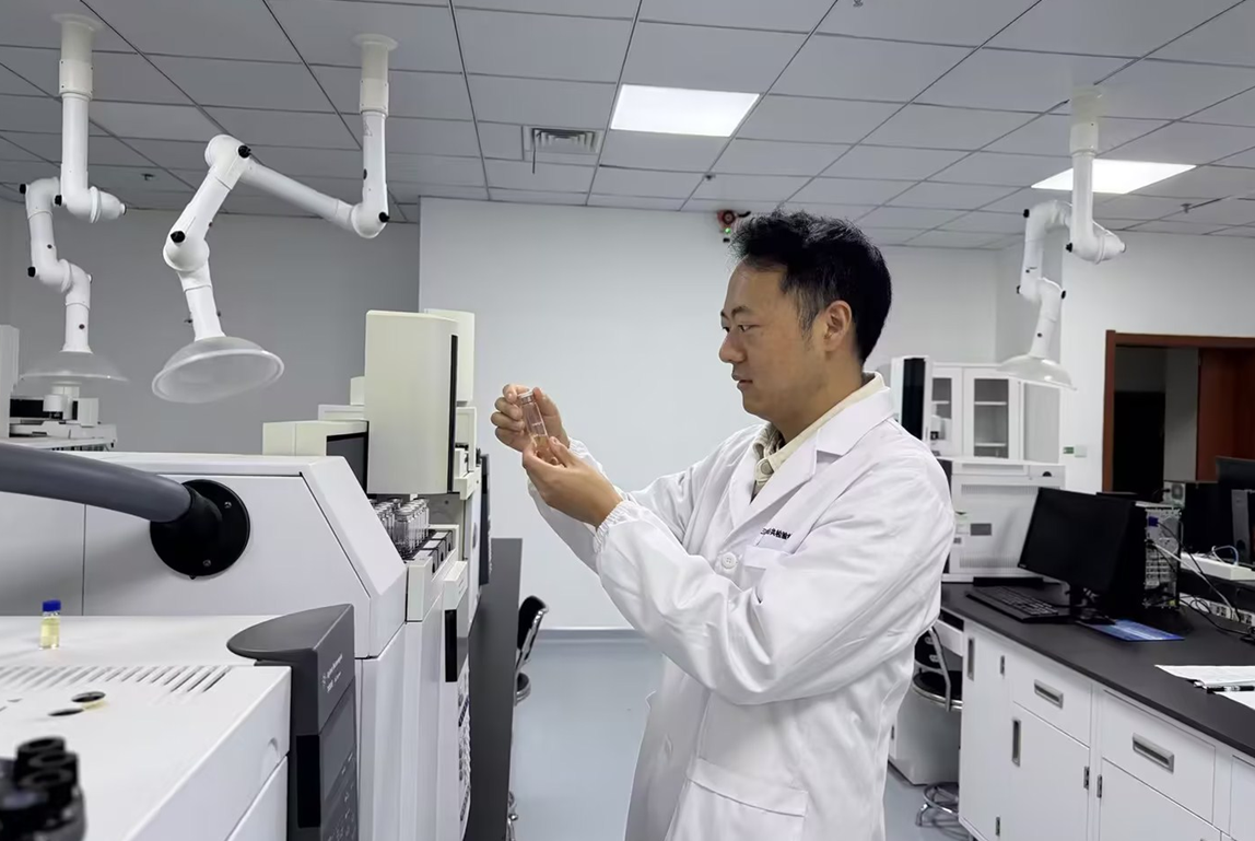 王也在三峡公共检验检测中心进行植物油溶剂残留的测定。