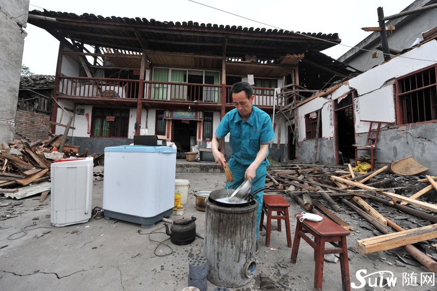 今天,在雅安地震重灾区芦山县龙门乡古城村,村民们坚强乐观,团结协作抗震自救。 古城村月光山组的骆驰正在房屋前的空地上搭建帐篷,张平书一家正在屋前空地上吃饭,见到记者便热情地招呼记者到她家吃饭。他们告诉记者,地震后邻里互助互救,他们觉得虽然遇到了灾难,但相信政府会来帮助他们。地震时,武警官兵过来帮群众抢救物资,大家都很感动。 古城村任家岗组的任体莲告诉人民网记者,目前芦山县古城村停电,村民仓里有谷子但打不出米来,他们需要柴油机的打米机,可以自己打米来自给自足,就不用外界来供应食物了。灾区村民正团结一心共同抗击地震。 在地震中,芦山县古城村高云珍的父亲不幸遇难,面对记者的安慰,高云珍的母亲说,要好好活下去。她家屋前的无花果树非常茂盛,枝头挂满了累累果实。 芦山县古城村任家岗组的任大叔在屋前空地上刷洗炊具,地震时他在外地打工,地震后迅速赶回家里,现在把炊具和一些家用电器都搬到了房前空地上。 |