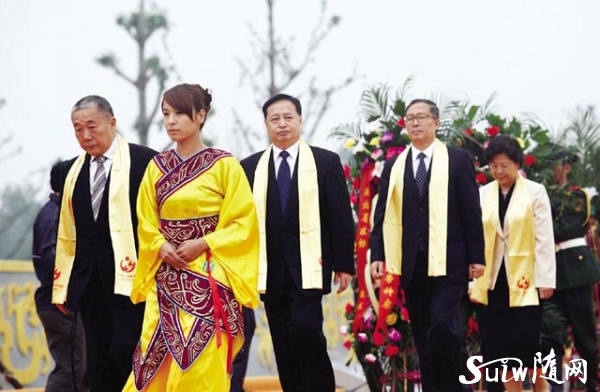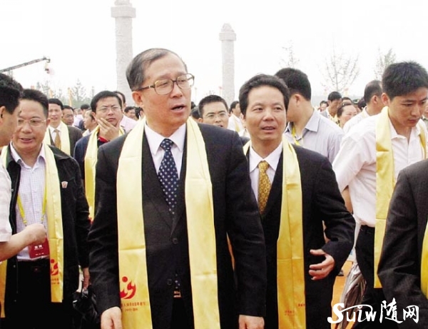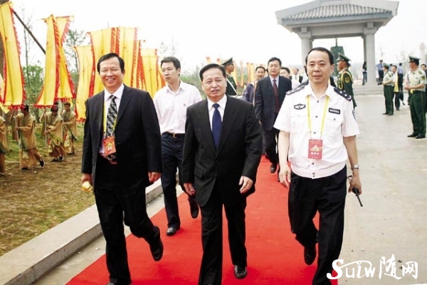图为 拜祖大典结束后,省委书记罗清泉(中)在市委书记马清明(左),市委常委、政法委书记、公安局长万学斌(右)等领导的陪同下,参观炎帝神农故里新景区。