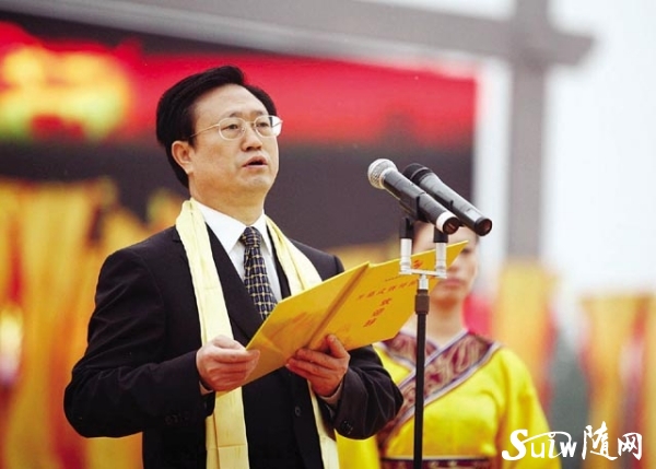 图为 湖北省委常委、宣传部长李春明在拜祖大典上致辞。