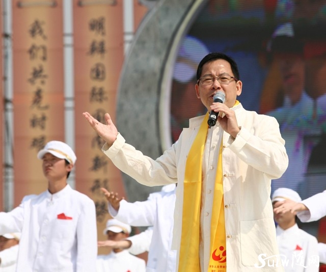 赵忠祥和湖北卫视、凤凰卫视、台湾东森电视台主持人一起主持庆典盛况