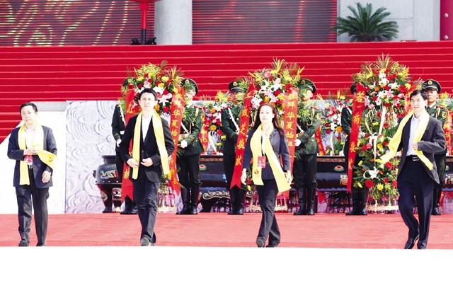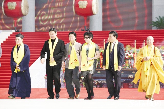 ◆北京师范大学教授于丹,省文联副主席、著名作家熊召政,大洪山慈恩寺主持释印顺,湖北省道教协会会长吴诚真,著名歌手韩磊敬献花篮。