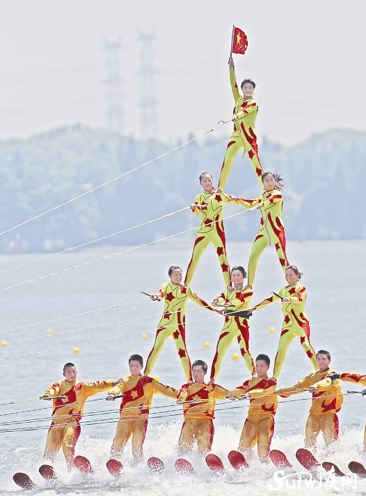 腾龙竞渡,百舸争流。昨日的东湖之上,13支中外名校赛艇队集体亮相,来自中国特技滑水队的队员们则献上优美华丽的水上芭蕾、惊险刺激的水中腾空跳以及凌空漫步的水上飞人特技表演,更是引得众多游客一片喝彩。今日,国际名校赛艇挑战赛及第二届武汉大学VS华中科技大学“同城双星”龙舟友谊赛将在东湖楚城团湖水域举行。