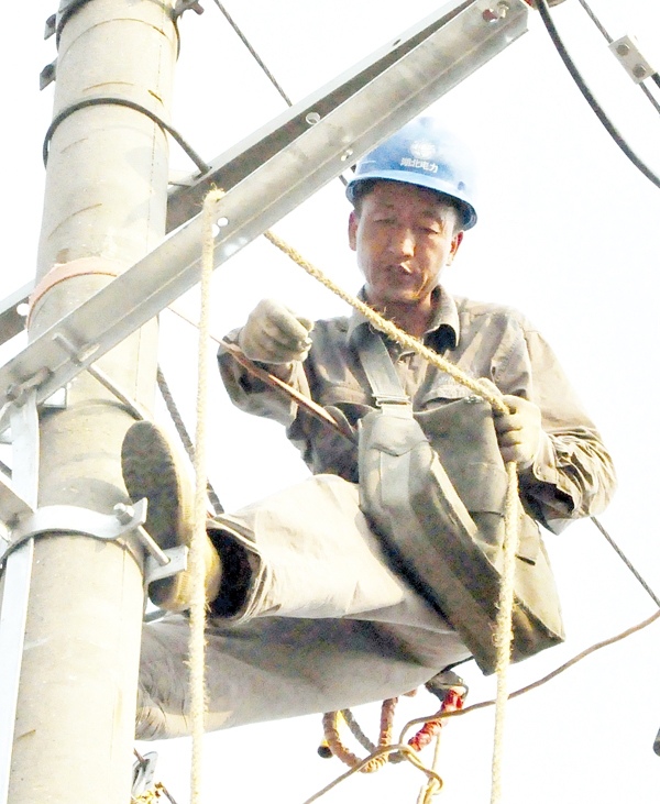 面对近期干旱酷热,随县厉山供电人员不分昼夜抢修供电设施设备,确保居民和工农业生产用电。