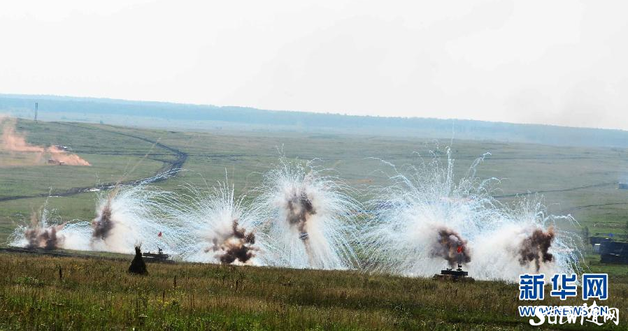8月15日,在俄罗斯切巴尔库尔合同训练场,中方步战车发射干扰弹掩护进攻。当地时间15日12时(北京时间14时),“和平使命―2013”中俄联合反恐军事演习在俄罗斯切巴尔库尔合同训练场举行实兵演习。演习以“联合反恐”为课题。双方共投入兵力1000多人,坦克、步战车、自行火炮等近百台,20多架歼击轰炸机和武装直升机参演。新华社发(谭长俊 摄) “和平使命―2013”中俄联合反恐军事演习实兵演习举行 新华网俄罗斯车里雅宾斯克8月15日电(记者王玉山)当地时间15日12时(北京时间14时),“和平使命―2013”中俄联合反恐军事演习在俄罗斯切巴尔库尔合同训练场举行实兵演习。 演习以“联合反恐”为课题。双方共投入兵力1000多人,坦克、步战车、自行火炮等近百台,20多架歼击轰炸机和武装直升机参演。 在一个多小时内,中俄两军共同决策、联合指挥,共享信息、联合侦察,混合编组、联合行动,统一计划、联合打击,优势互补、联合保障,完成了实兵演习的全部内容,展示了中俄两国共同打击恐怖势力的决心和意志,实现了中俄两军联合遂行反恐作战任务的深度融合,进一步锻炼和提高了两军联合反恐作战能力。 “和平使命—2013”中俄联合反恐军事演习共分为兵力投送与部署、战役筹划和战役实施3个阶段。在兵力投送与部署阶段,主要演练了组织部队向预定地域投送,建立反恐作战部署;在战役筹划阶段,主要演练了协调战役企图、定下战役决心、拟制作战计划、组织战役协同等;在战役实施阶段,主要组织实兵演习。 这次联演,是落实两国元首共识,增进两国政治互信、加强两军务实合作的重要举措,演习不针对第三方。今年7月1日,中国人民解放军总参谋长房峰辉上将和俄罗斯联邦武装力量总参谋长格拉西莫夫大将在莫斯科会晤时共同批准了“海上联合—2013”和“和平使命—2013”两场演习企图立案,并对外公开宣布举行上述演习。 中国人民解放军副总参谋长王冠中、俄罗斯中部军区总司令博格丹诺夫斯基、俄罗斯陆军副总司令林佐夫等现场观摩。实兵演习结束后,中俄双方还组织了演习结束仪式和装备展示等活动。