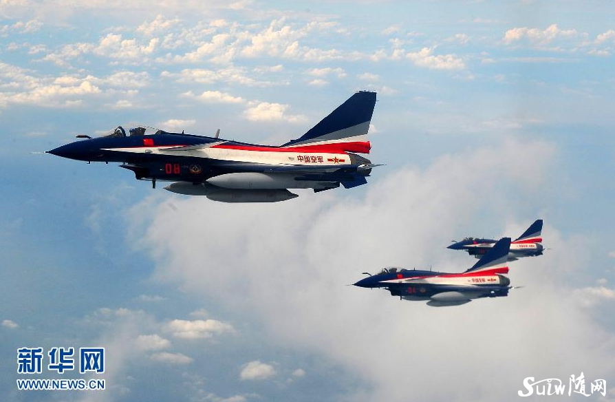 空军八一飞行表演队受领任务后,歼-10表演机进行编队转场训练(7月12日摄)。经中央军委批准,空军八一飞行表演队8月18日启程赴俄罗斯参加第十一届莫斯科航展,并进行飞行表演。这是“中国蓝天仪仗队”组建51年来首次飞出国门走向国际飞行表演大舞台。新华社发(张鹏焱 摄)