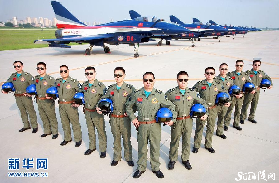 这是赴俄参加莫斯科航展的空军八一飞行表演队全体飞行员(7月31日摄)。经中央军委批准,空军八一飞行表演队8月18日启程赴俄罗斯参加第十一届莫斯科航展,并进行飞行表演。这是“中国蓝天仪仗队”组建51年来首次飞出国门走向国际飞行表演大舞台。新华社发(张东贺 摄)