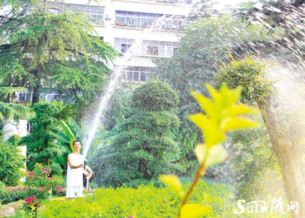 连日晴热高温,绿化苗木面临“失水”危机,园林工人每日洒水护绿。图为神农公园园林工人在为苗木洒水。