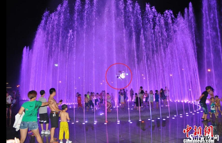 近日,湖北恩施一名小男孩在新建的州文化中心广场上喷泉内嬉戏,踩到音乐喷泉口,被冲上空中近2米后摔倒在地,鼻唇出血,衣裤被冲破。施闻 摄