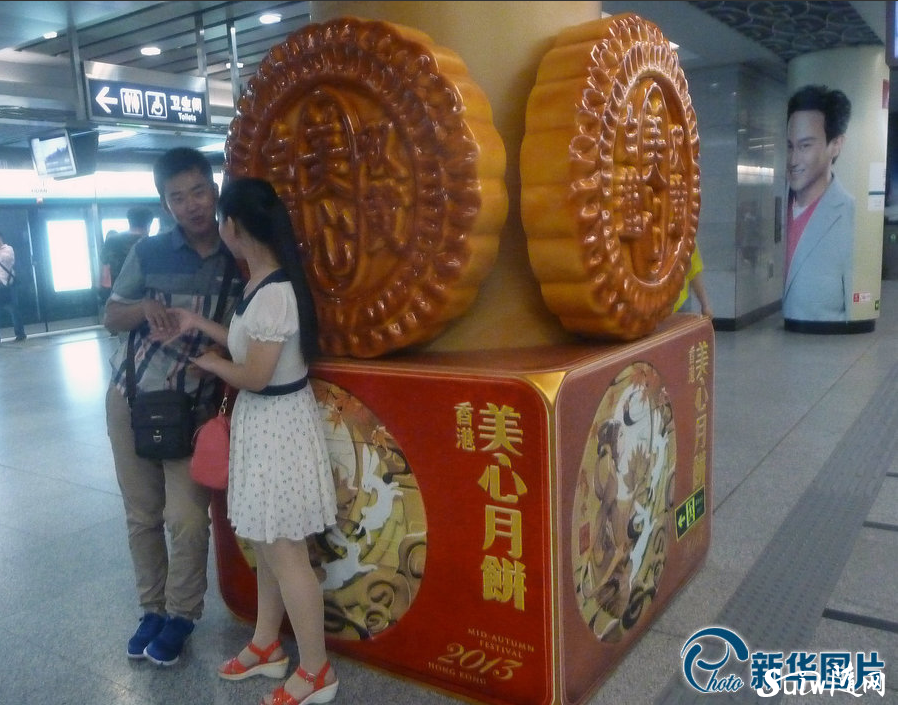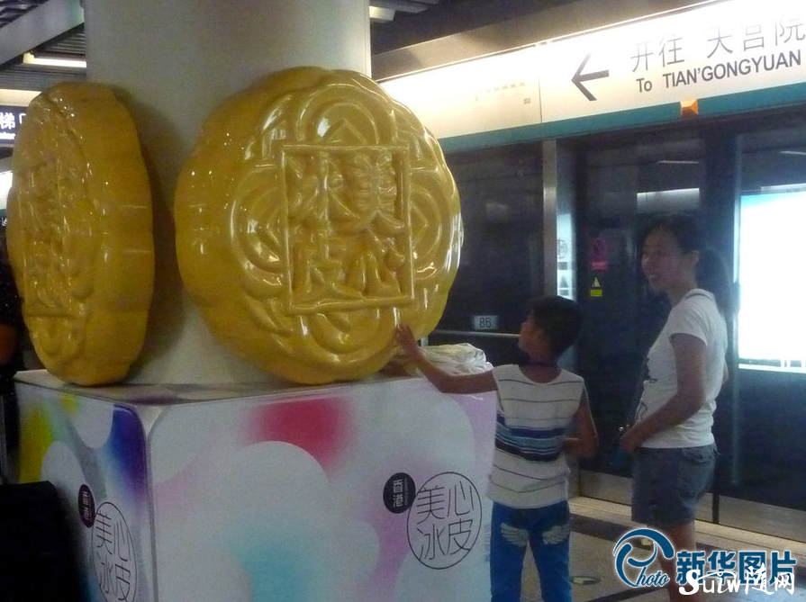 北京: 巨型“月饼”亮相地铁站 中秋“商战”悄然起